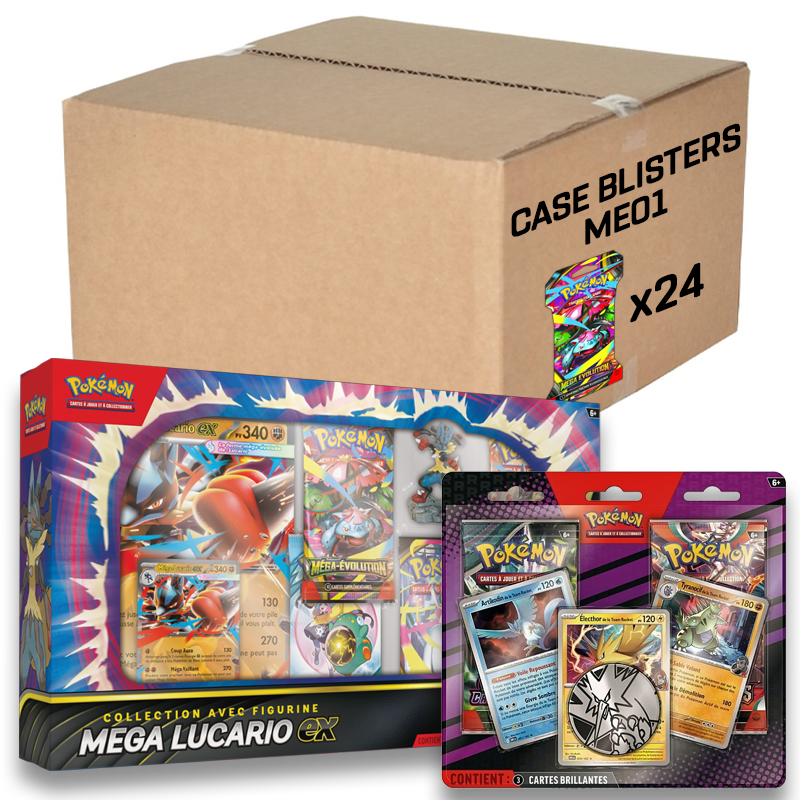 Pack Pokémon : Case 24 Blisters ME01 + Coffret Premium Méga-Lucario EX + Duo Pack Octobre (FR)