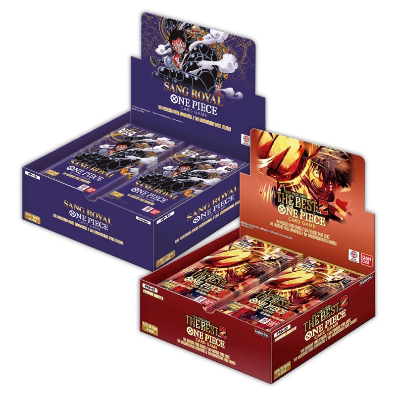 Profitez d’un ensemble complet One Piece Card Game avec cette ensemble Display anglaise PRB02 et Display française OP10 pour enrichir votre collection et booster vos decks !