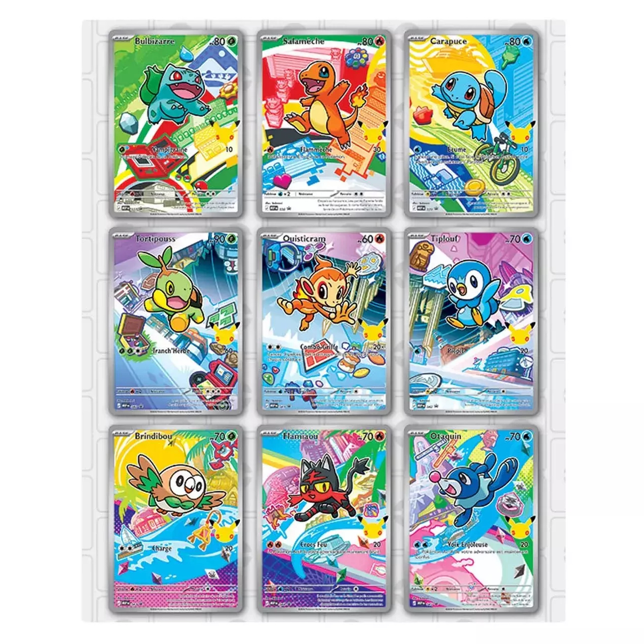 Pour chaque Dresseur ou Dresseuse, l’aventure commence avec un premier partenaire, un ami loyal qui vous accompagne quoi qu’il arrive. Revivez quelques-unes de vos aventures préférées et célébrez le lien entre Dresseur ou Dresseuse et Pokémon avec un lot de boosters contenant trois des neuf cartes promo de style « illustration rare » mettant en vedette des premiers partenaires Pokémon appréciés des régions de Kanto, Sinnoh ou Alola. Vous trouverez également deux boosters supplémentaires et une superbe page d’autocollants de premiers partenaires Pokémon.