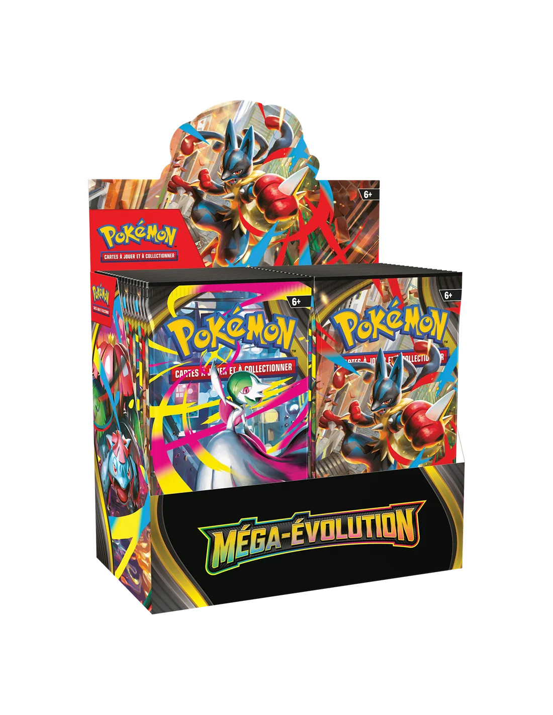 Le Display ME01 Méga-Évolution – FR propose 36 boosters mettant à l’honneur Méga-Lucario-ex, Méga-Gardevoir-ex et d’autres cartes rares du tout nouveau bloc Méga.