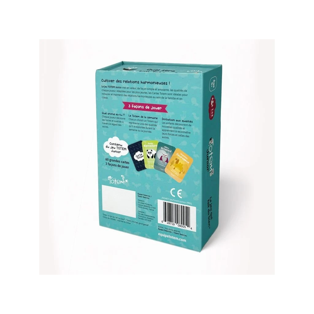 Le jeu Totem Junior met en valeur, de façon simple et amusante, les qualités de chaque joueur. Adaptées pour les plus jeunes, les Cartes Totem sont idéales pour instaurer et maintenir des relations harmonieuses au sein de la famille et en classe.